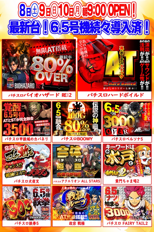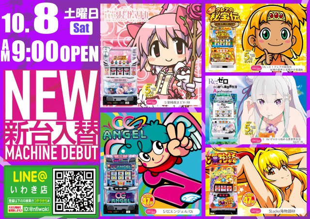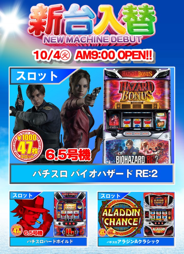 10月4日(火)新装開店初日!最新台導入!朝9時オープン♪