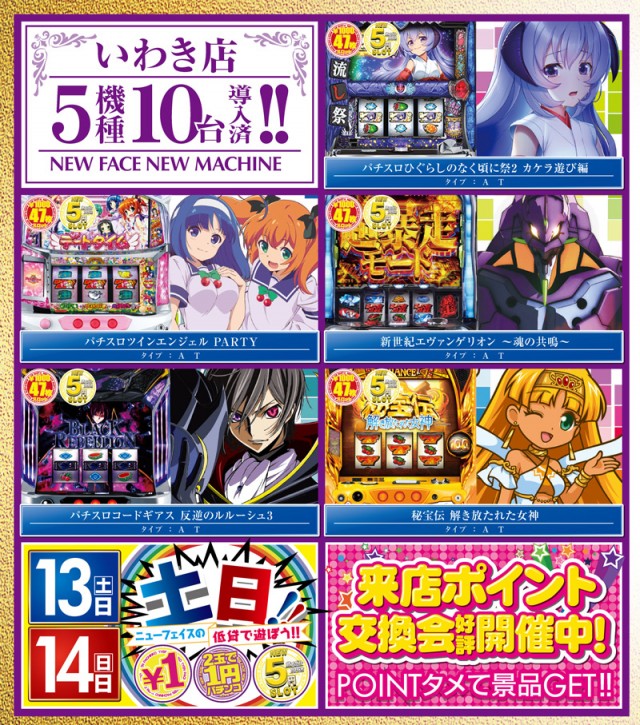 ニューフェイス南店最新台導入済!いわき店新装開店!