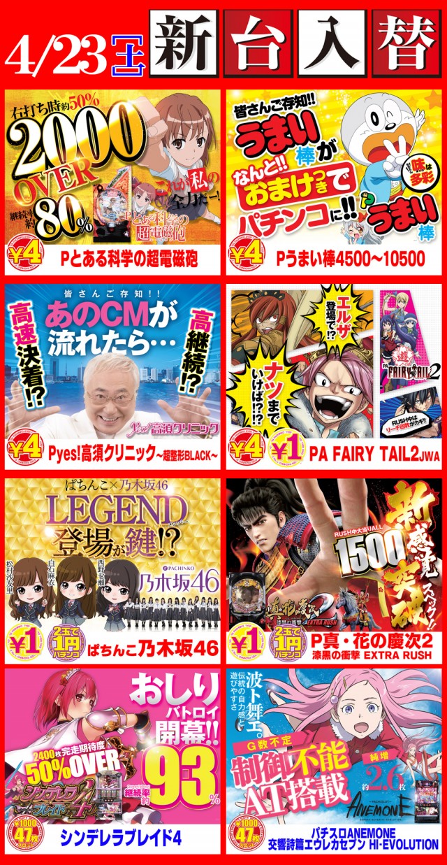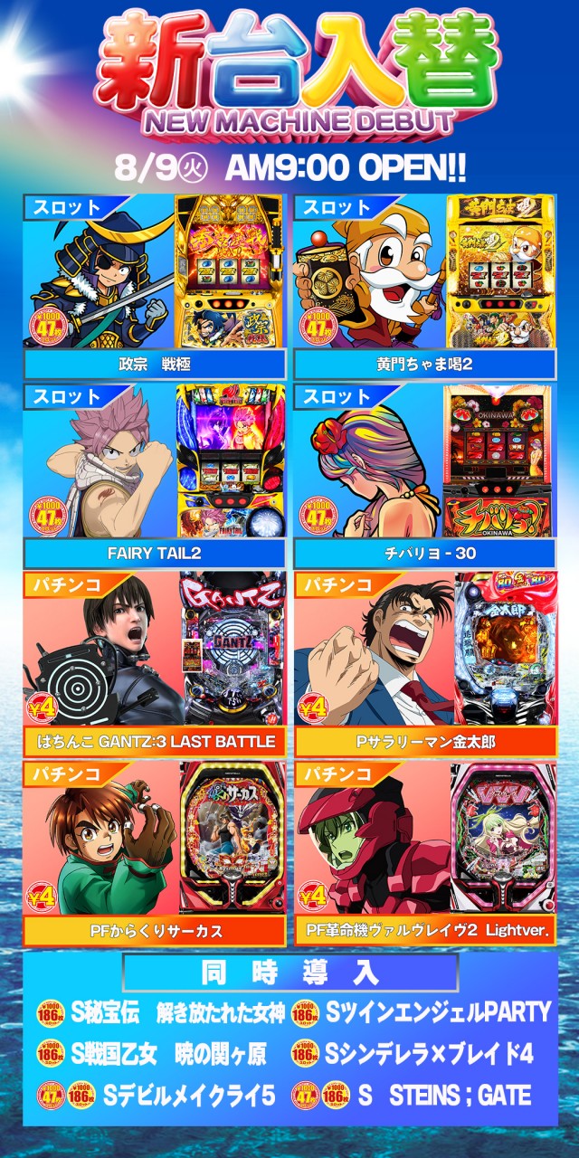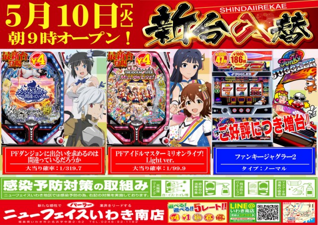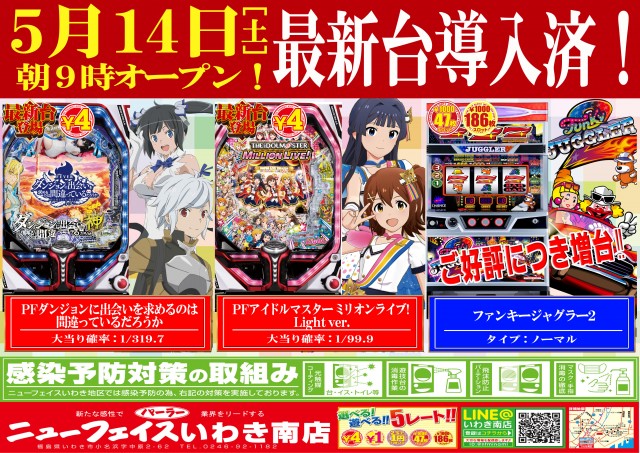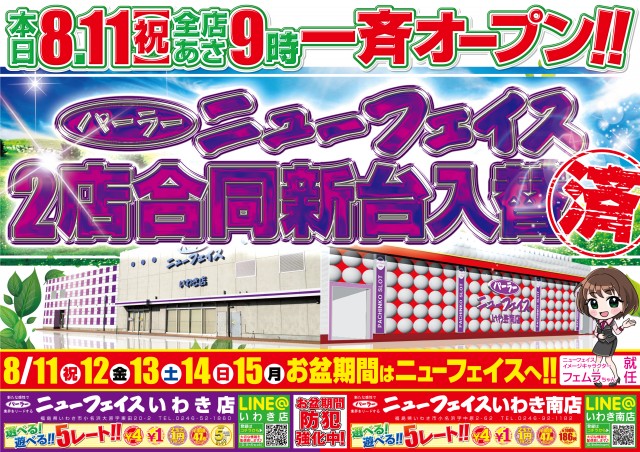ニューフェイス南店最新台導入済!いわき店明日新装開店!
