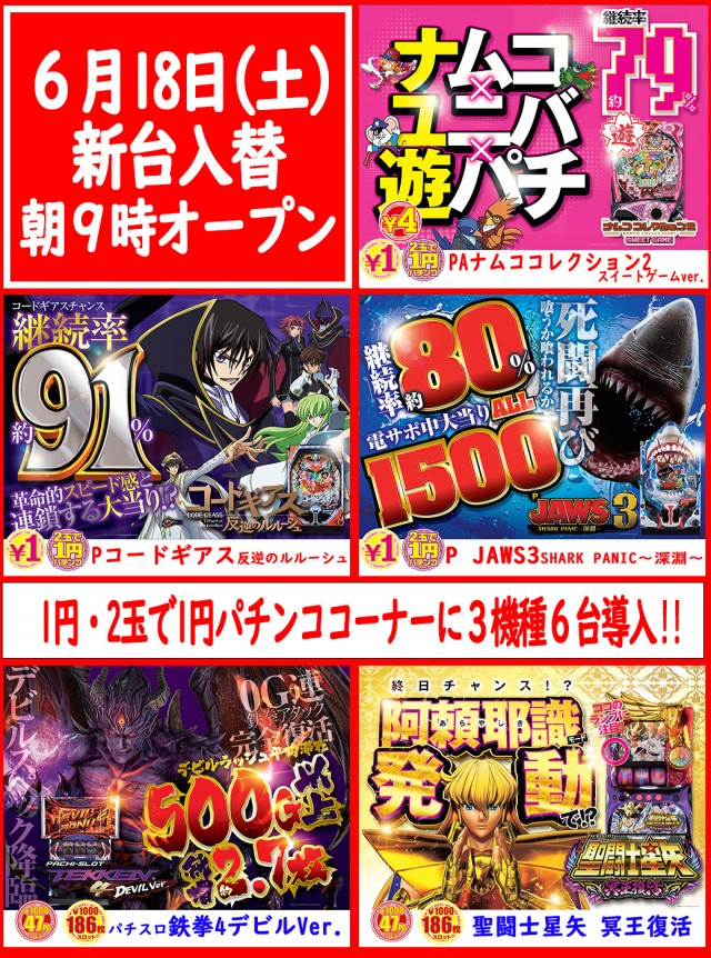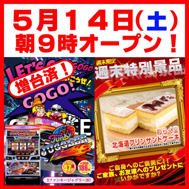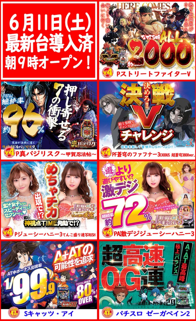 本日、新装開店!朝9時オープン♪最新台導入!