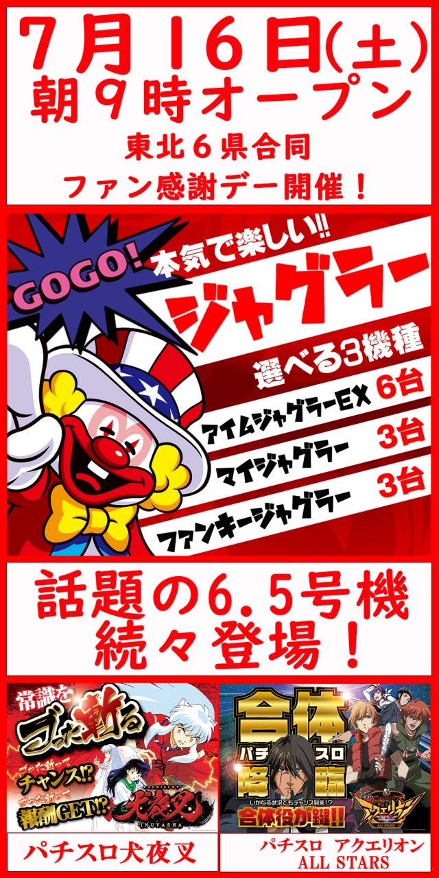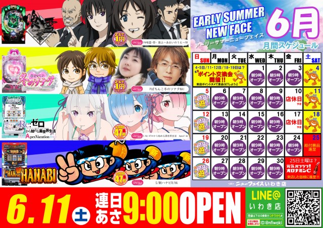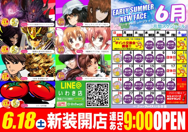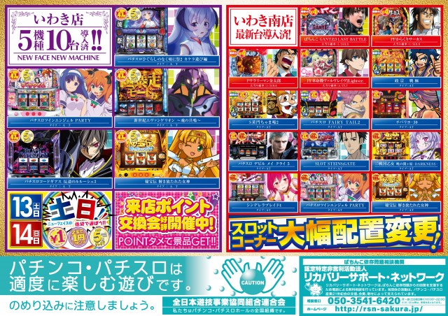 明日!いわき店・南店、新台入替同時朝9時オープン♪