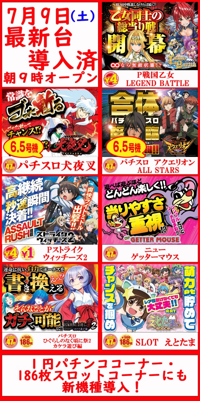 本日朝9時オープン♪6.5号機続々登場!