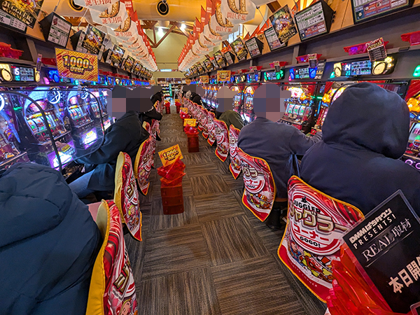 「パチスロ ダンジョンに出会いを求めるのは間違っているだろうか2」や「パチスロ かぐや様は告らせたい」、「スマスロスーパーブラックジャック」も大盛り上がり。機種の醍醐味を味わうプレイヤーを複数目にしている。