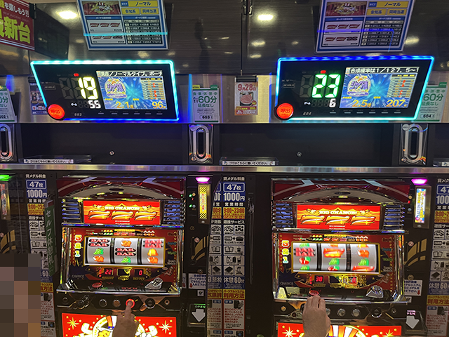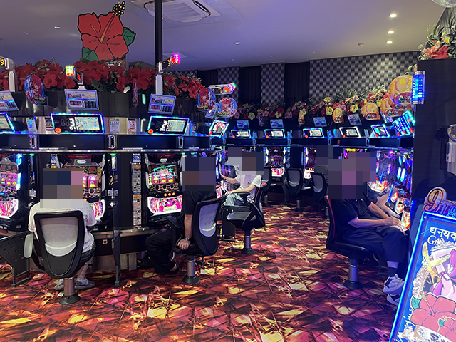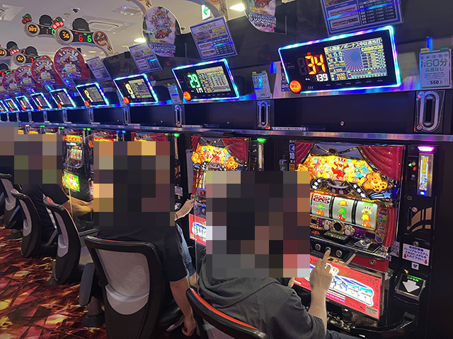 遊技を満喫しているようで、プレイヤーたちはうれしそうにレバーを叩いていたぞ。