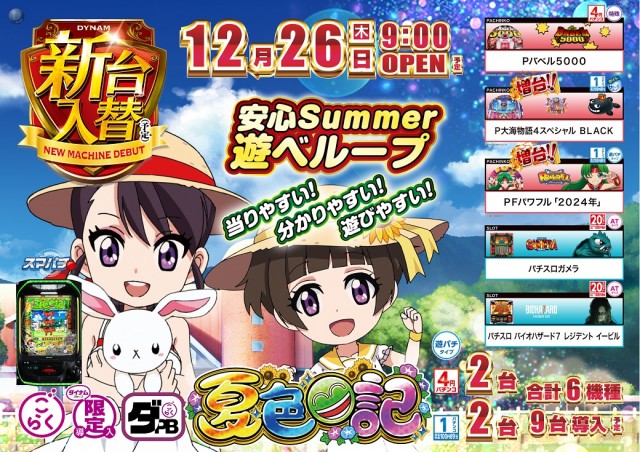 💥明日💥新台入替予定💥eA夏色日記含む、6機種9台導入💥