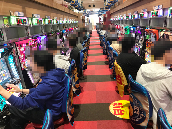 5円パチスロコーナーでも、遊技を楽しむプレイヤーの姿が数多く見られた。