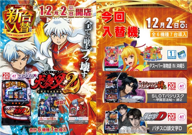 明日12月2日 新台入替/L 犬夜叉2含む、全6機種7台導入