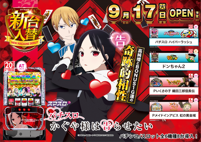 明日9月17日 新台入替/Lかぐや様は~含む、全6機種導入!