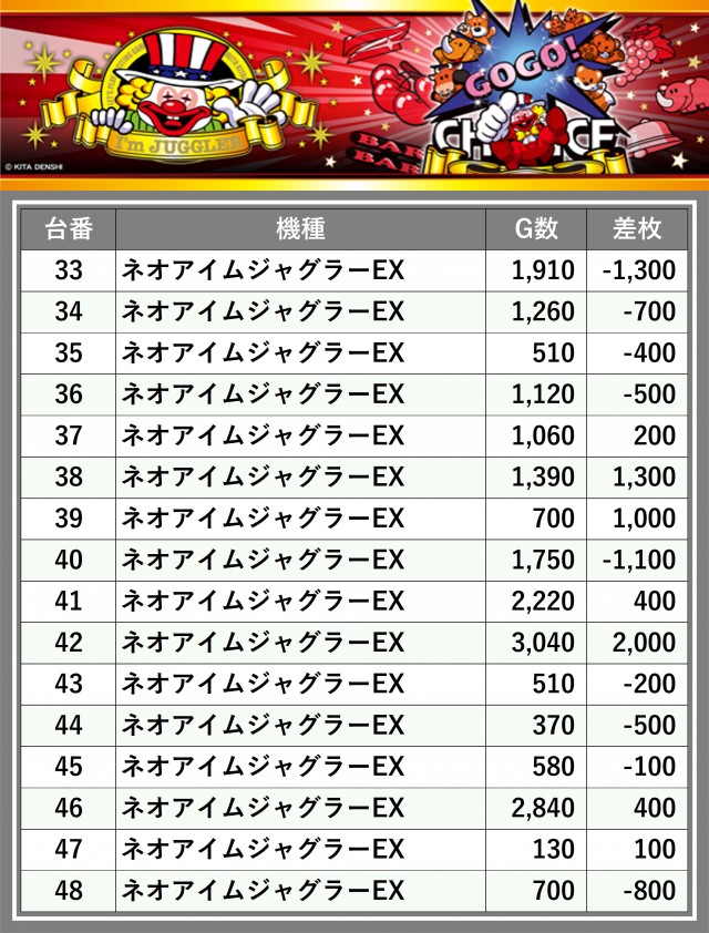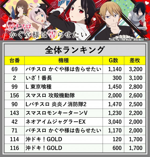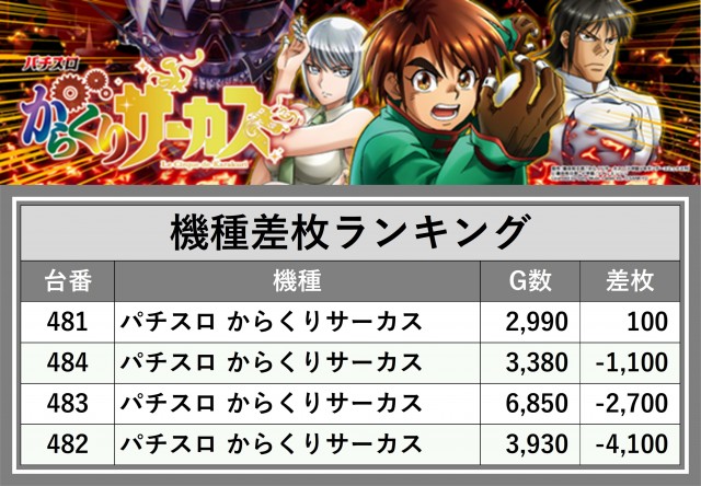 ※差枚数順に掲載しています