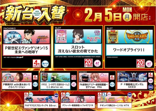 🌟明日新台入替予定💥エヴァ15甘🎀冴えない彼女💓全10機種🌟