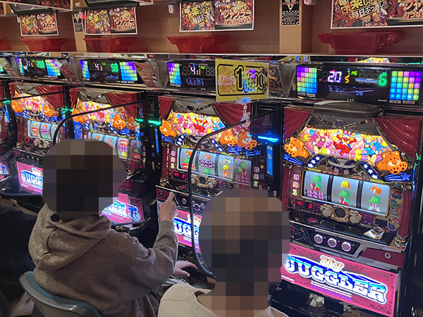 1000円/46枚パチスロに目を移すと、「マイジャグラーⅤ」や「ハッピージャグラーVⅢ」、「ウルトラミラクルジャグラー」で理想的な展開を迎えたプレイヤーがあちこちで見られ、皆、充実した時間を過ごしていた。