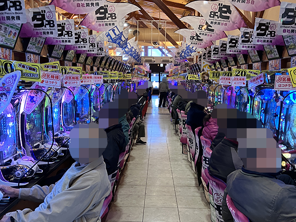 店内では貸し玉料金を問わず様々な機種で、心ゆくまで楽しむプレイヤーの姿が見られた。