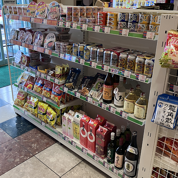 景品コーナーには食品類やお酒類など多彩なアイテムが並んでおり、プレイヤーたちの興味を引いていた。