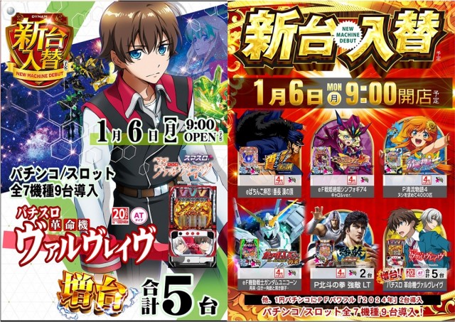 💥本日💥新台入替予定💥eシンフォギア4含む、全7機種導入💥