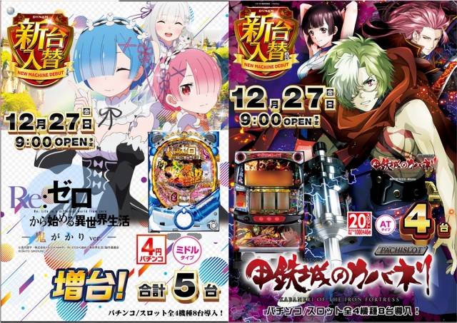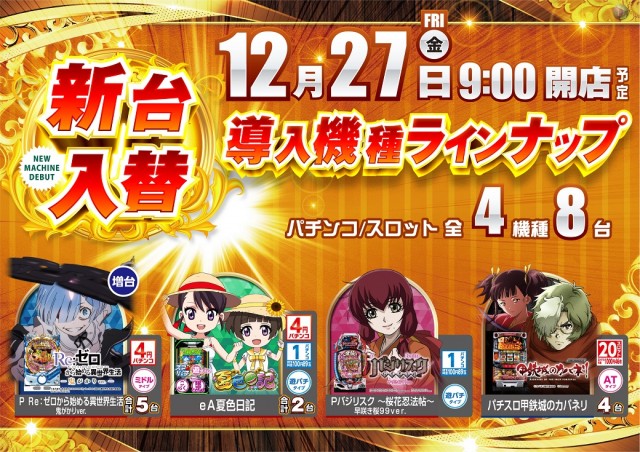 💥本日💥新台入替予定💥Re:ゼロ鬼がかり増台!全4機種導入💥