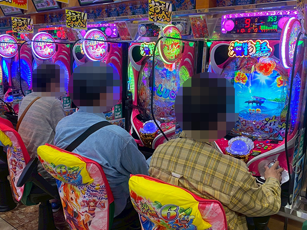 16時ごろの4円パチンコでは、「Pスーパー海物語IN沖縄6」や「e 東京喰種」のシマから活気が感じられ、プレイヤーのイキイキとした表情が印象に残っている。