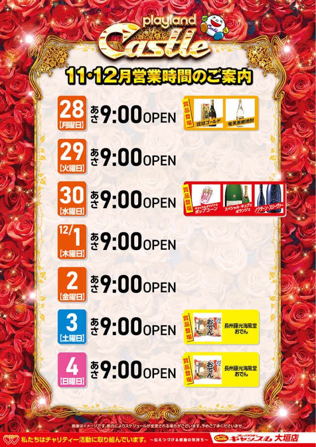 11月16日 ★水曜日★はキャッスル全店朝9時オープン!!