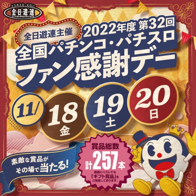 明日より3日間 全国パチンコ・パチスロファン感謝デー開幕!