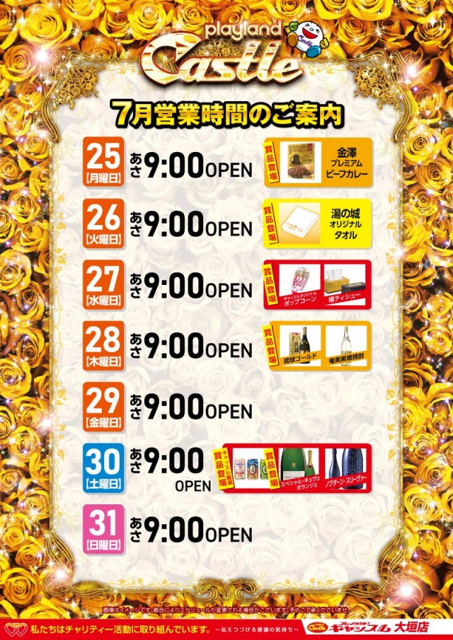 7月30日土曜日☆★全店合同賞品登場☆★朝9時開店!