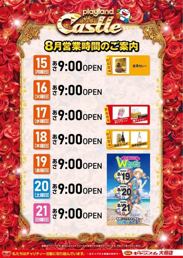 明日のキャッスル大垣店は★20日水曜日&新台入替★朝9時開店