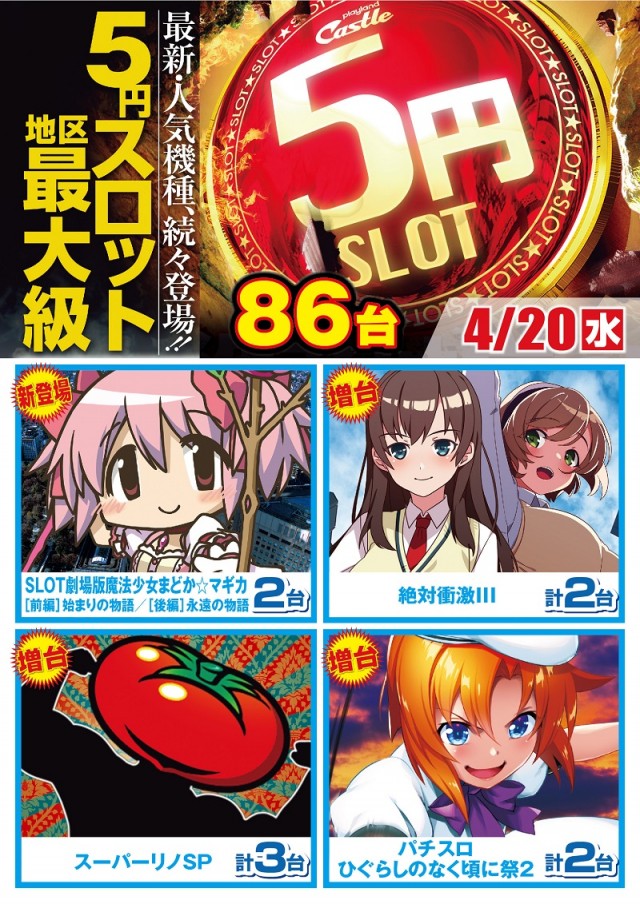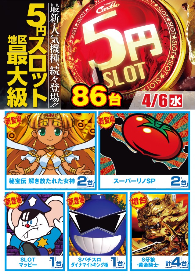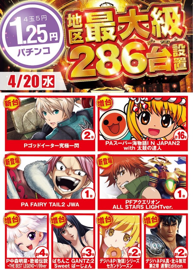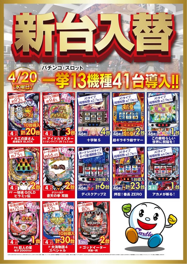 3月9日水曜日新台入替朝9時開店!20機種58台導入完了!