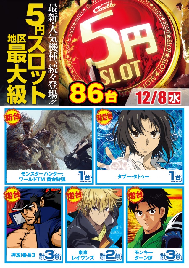 12月22日 水曜日 新台入替 一挙10機種84台導入!!