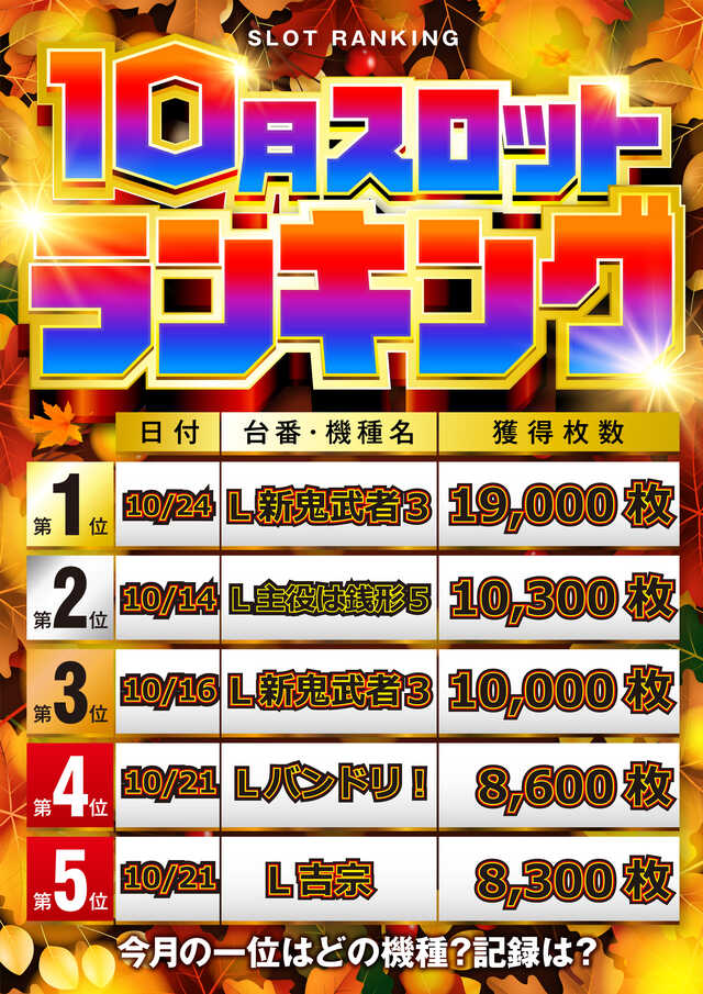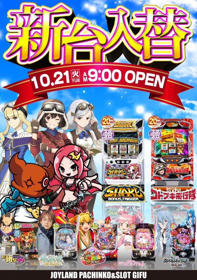 10月21日(火)新台入替 朝9時開店!!