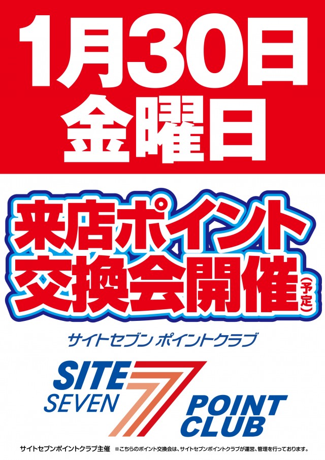 1月30日(金)朝9時開店!来店ポイント交換会開催予定!