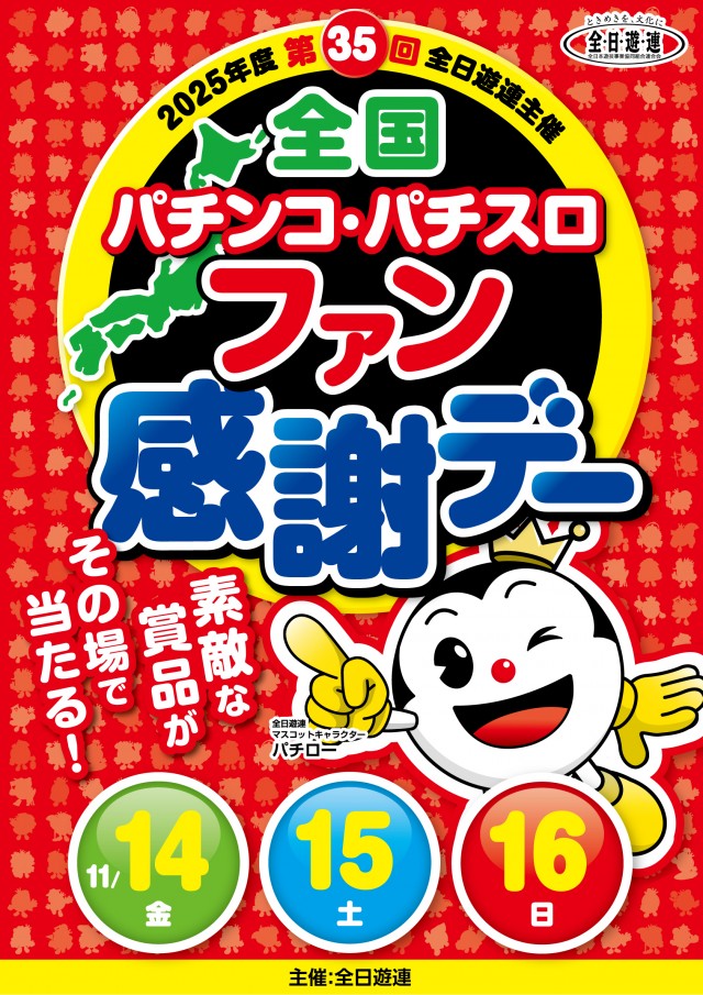 16日も全日遊連主催ファン感謝デー開催予定!朝9時開店!