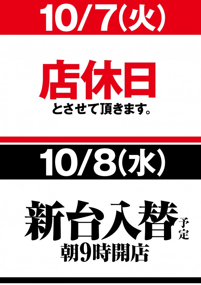 2025/10/0710月8日(水)は新台入替!朝9時開店!!