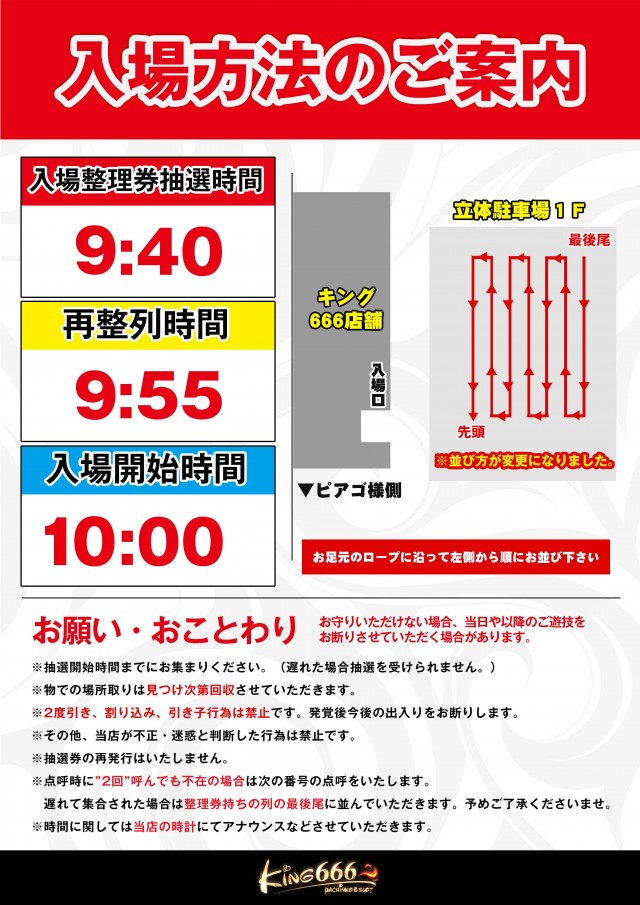 キング666瑞浪インター店 9月6日 8時40分抽選開始