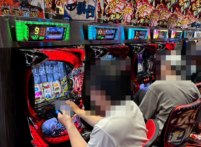 「L 東京喰種」と「スマスロ モンスターハンターライズ」は、どちらも4台中3台が稼働しており、シマ内は活況。