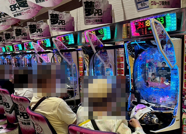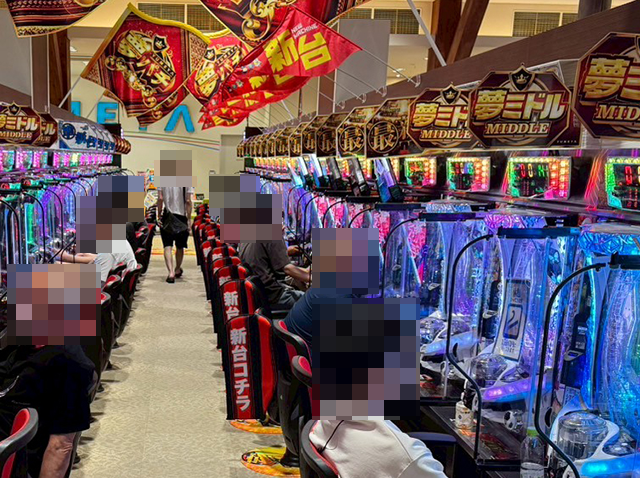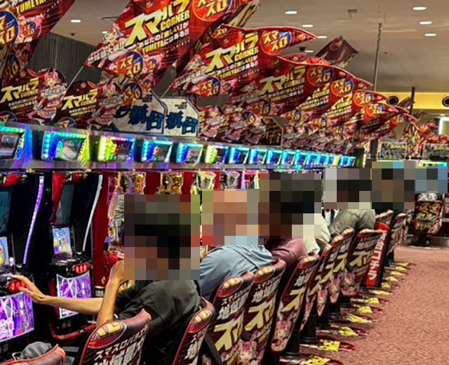 パチンコをみると、スマパチで遊技をおこなっているプレイヤーが多数。