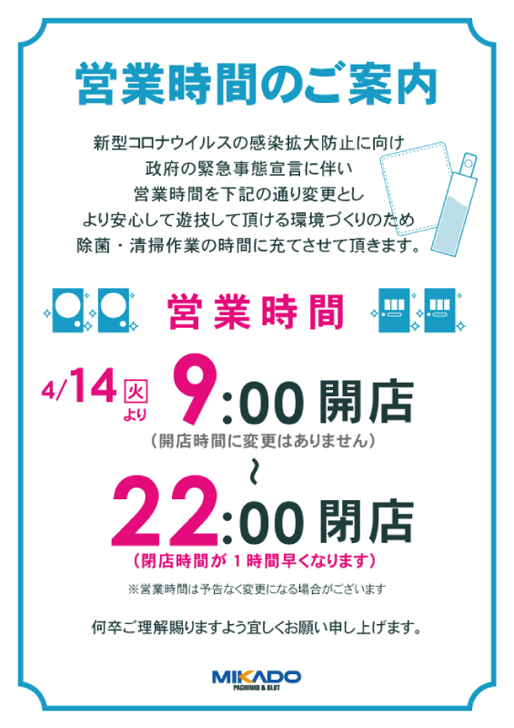 新型コロナウイルス感染拡大の状況をふまえミカド岐阜岩田店は下記のように対策を実施ししながら