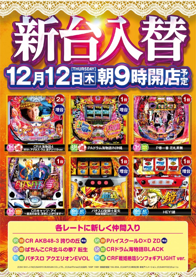パチンコ: [1.25]:180台 [0.5]:36台 [0.2]:36台 |