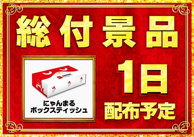 抽選開始時間:朝8時30分 ※抽選開始時間以降にご来店のお客様は一般入場となり、抽選入場が終わり次第のご入場となります。 |