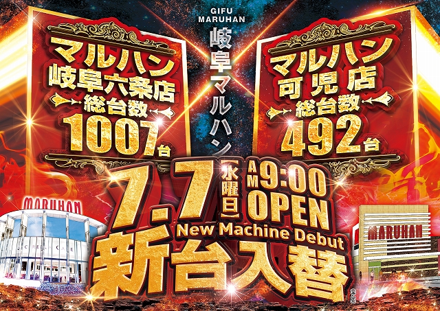 明日⇒店休日・・🌞7月7日🌞⇒岐阜全店❗合同新台入替(予定)