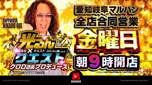 愛知岐阜マルハン全店合同営業❗★金曜日★光るん✖クエスト❗