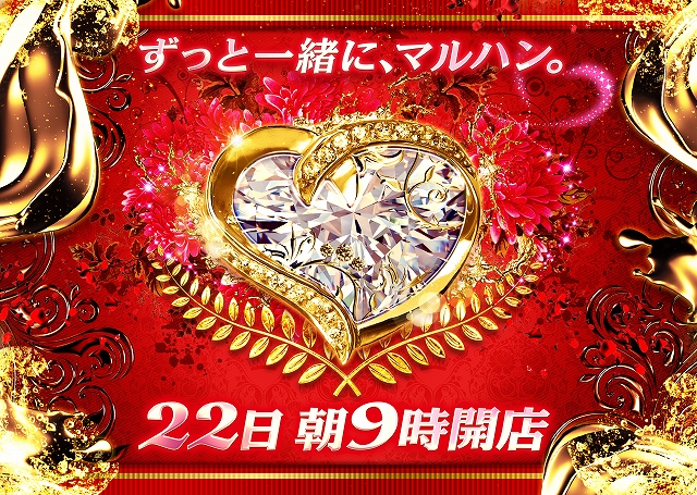 『22日』ずっといっしょに、マルハン。朝9:00オープン!!