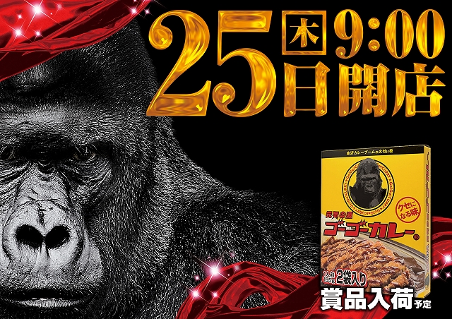 抽選開始時間:朝8時30分 ※抽選開始時間以降にご来店のお客様は一般入場となり、抽選入場が終わり次第のご入場となります。 |