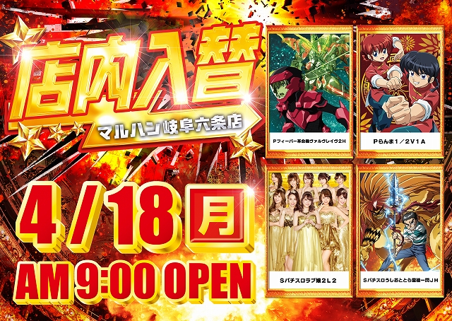 マルハン岐阜六条店💪解✖禁💪フウゥーー『21日』新台入替❗❗