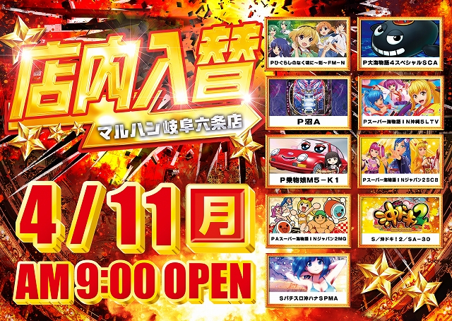 抽選開始時間:朝8時30分 ※抽選開始時間以降にご来店のお客様は一般入場となり、抽選入場が終わり次第のご入場となります。 |