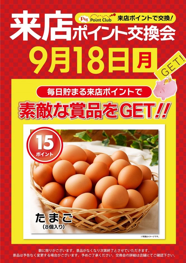 9月18日(月)朝9時開店・ポイント交換会開催!!