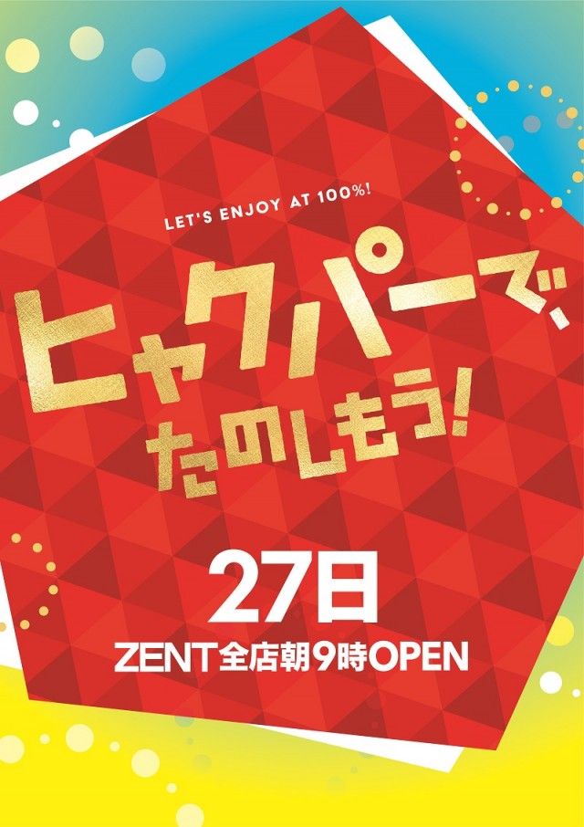 9月9日(土)ZENT全店朝9時OPEN!