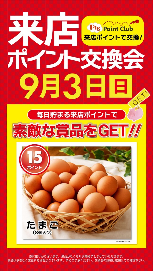 9月3日(日)朝9時開店・ポイント交換会開催!!