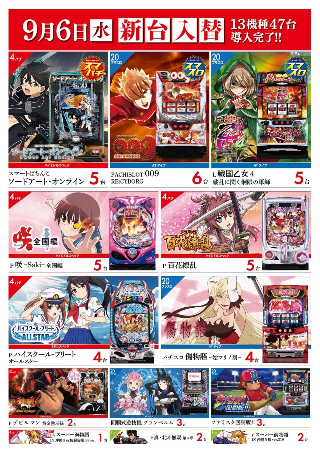 9月6日(水)朝9時開店・新台入替初日★