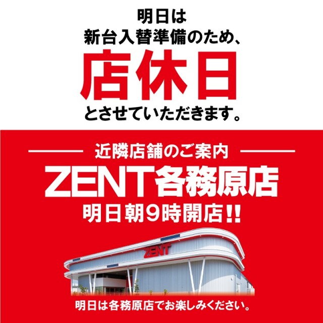 【ZENT 市ノ坪店】6月5日(月)新台入替準備の為店休日