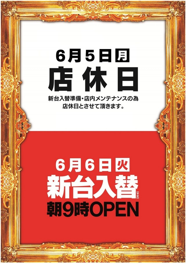 6月6日(火)朝9時開店・新台入替初日★