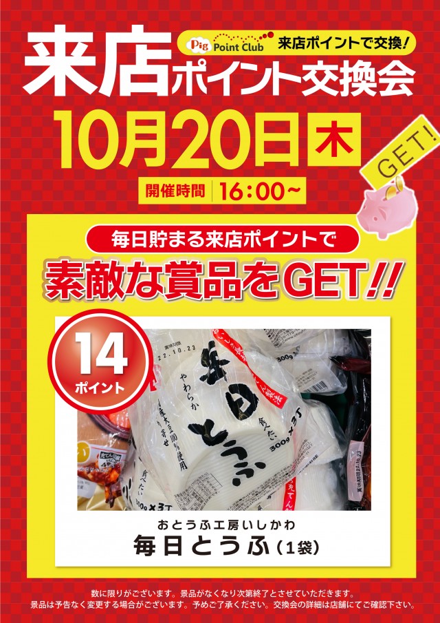10月20日(木)9時開店!!ポイント交換会開催!!
