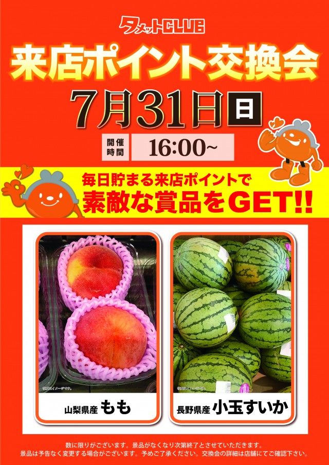 7月31日(日)ポイント交換会・朝9時OPEN!